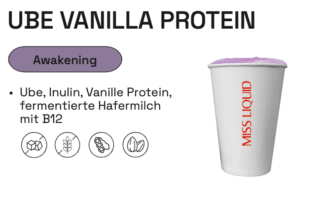 Wilde Heidelbeeren, Chocolate-Vanilla Protein, Maca, Blaue Spirulina (Arthrospira platensis), Aktivkohle, Rote-Bete-Pulver, Tonkabohnen, Zimt, fermentierte Hafer Mylk (oder Bio-Mandel Mylk oder Sproud Erbsen Mylk), Kokosnuss-Creme. Enthält Soja und Mandeln. Glutenfrei. Zuckerfrei, enthält nur von Natur aus Zucker.